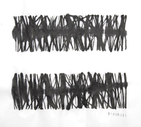 今日は最初に水で渦巻きを描いて後から墨で描きました。