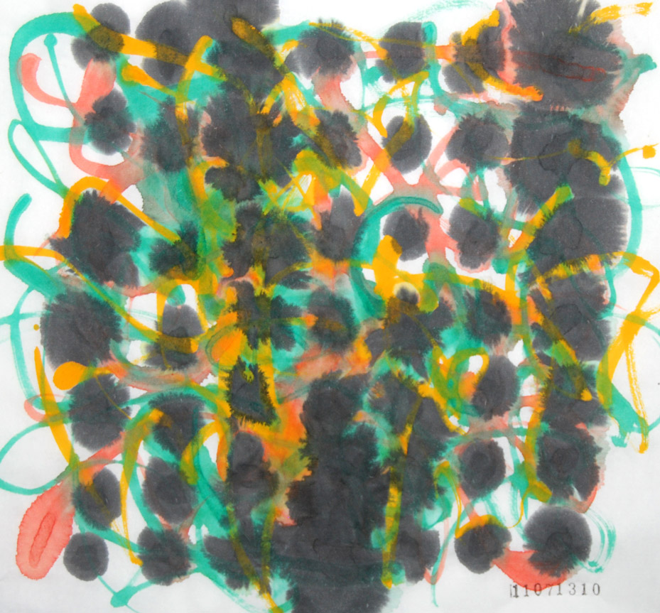 たとえばこのドローイングであれば、紙というものに墨や絵の具で痕跡を残しているわけで、その行為は紙という対象に物理的な作用をしているということになるかと思います。
