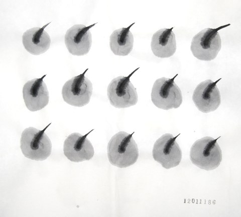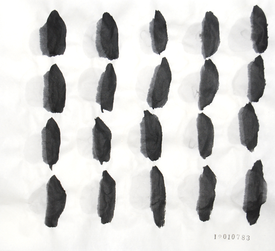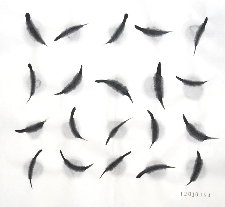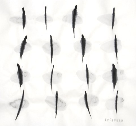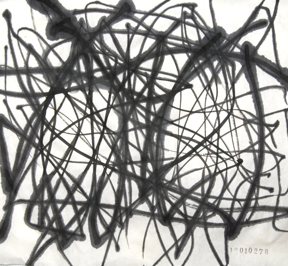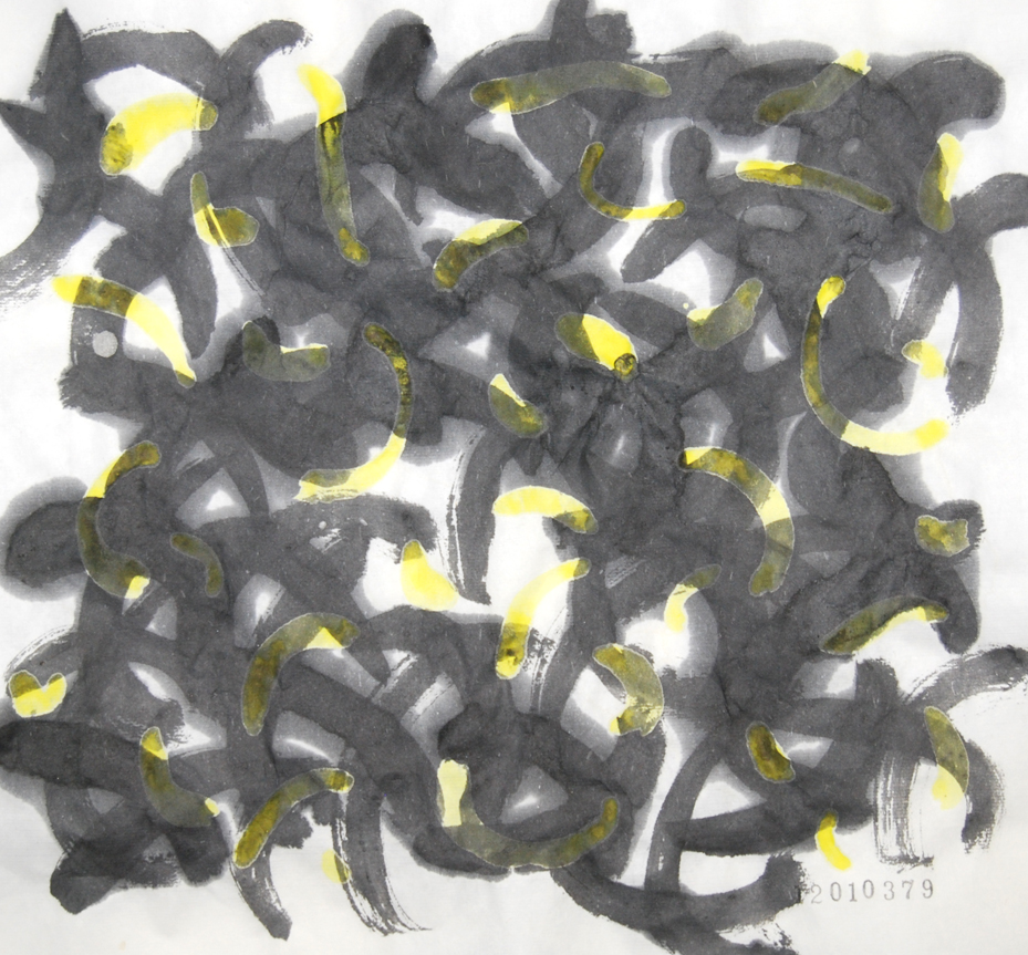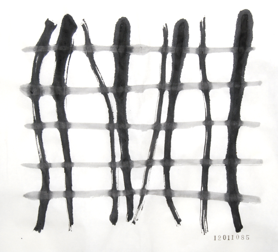 今日の縦の線は植物の繊維で作った自作の筆で描いています。