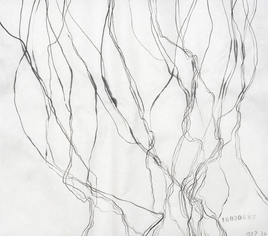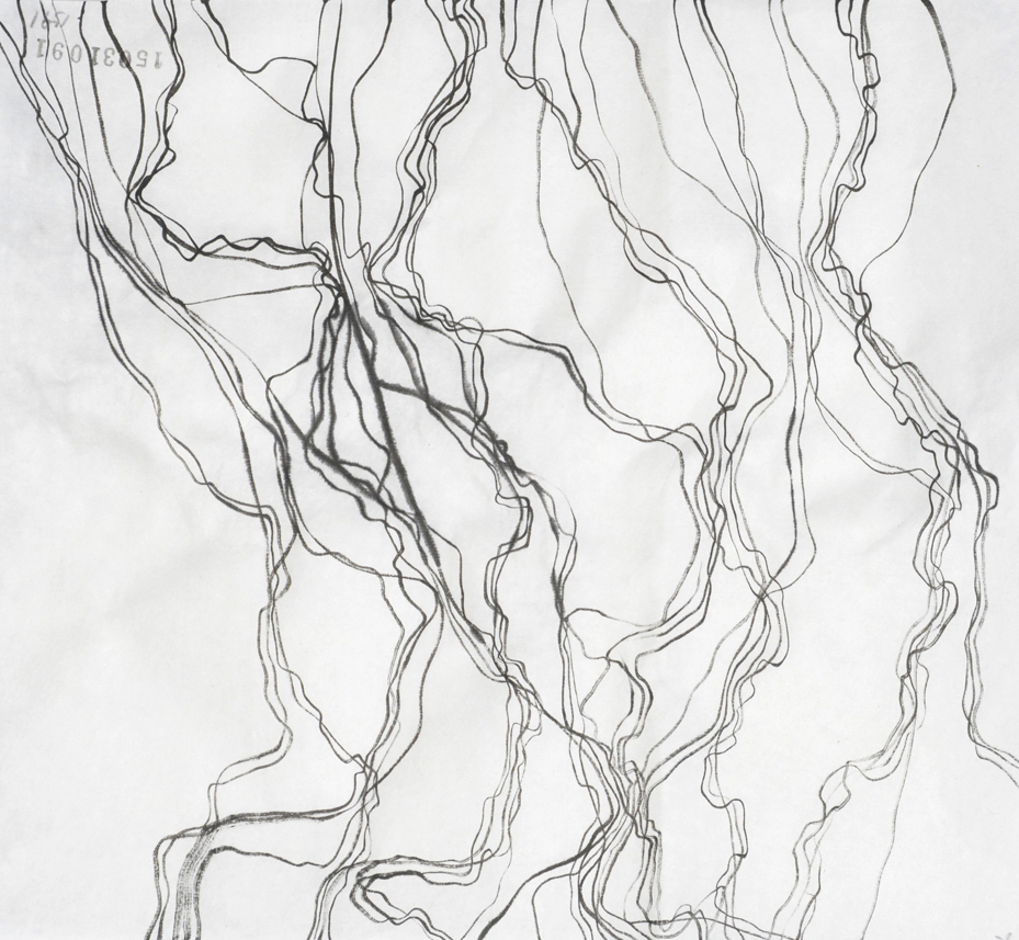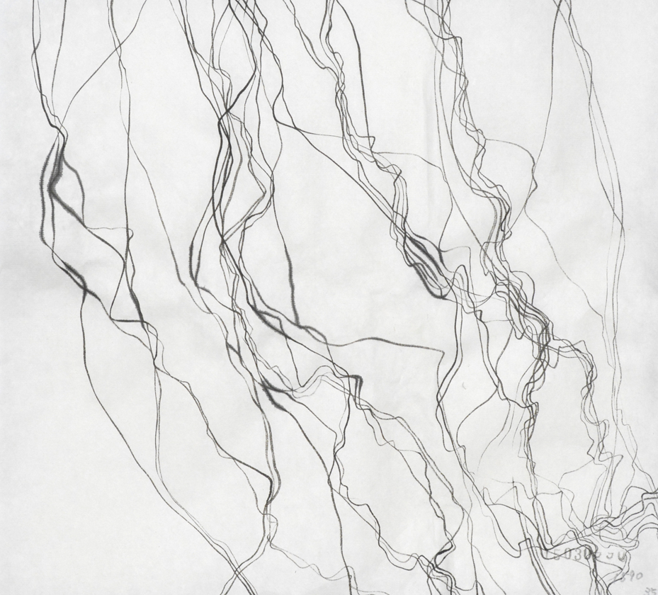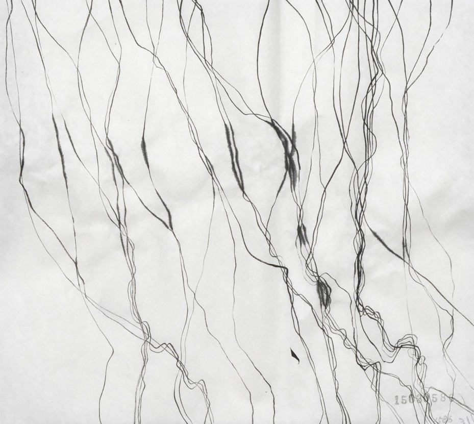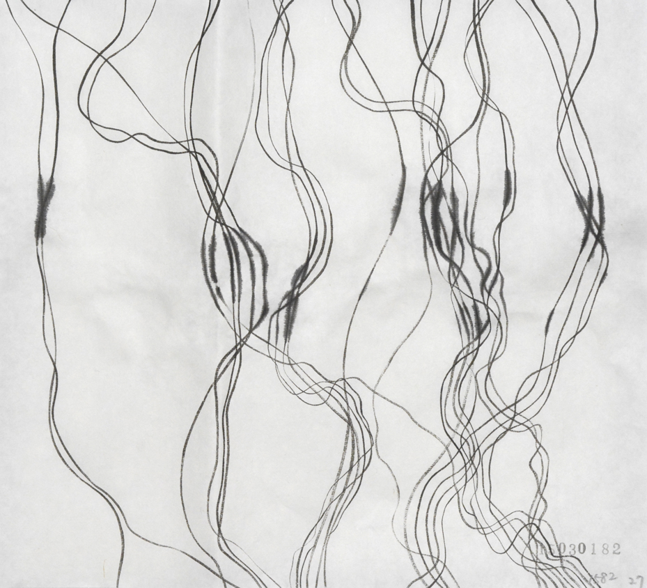 こういう線を人工知能を持ったコンピューターに描かせることは出来るのだろうか。 プログラムできるだろうか。ある線と平行に書いたりそれを突き抜けたり、また平行になったり、揺れてみたり。