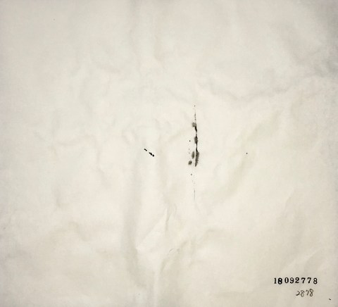 下の紙には微かに滲みが見えるだけになって注意して見なければ何も無い真っ白な紙に見えます。