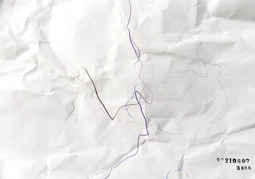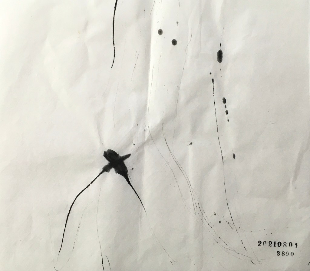 墨がない場所だったのでそこにある色鉛筆で描いた